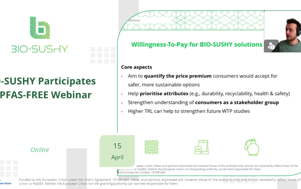 On 15 April 2026, BIO-SUSHY joined the PFAS-FREE webinar by Belgium Builds Back Circular, where over 90 participants discussed updates in PFAS alternatives and innovation. The webinar offered a platform for EU projects, researchers, and policymakers to discuss the shift […]